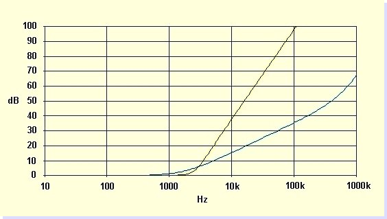 BlackNoise 500 - Attenuazione in db alle varie frequenze. Impedenza standard ingresso/uscita 50/50 ohm |