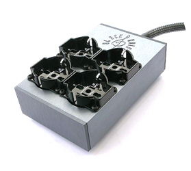 Four multistandard or US style outlets, shielded enclosure, built-in BlackWire or GoldWire mains cable |
