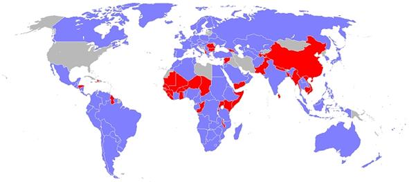 Nota: Informazioni non disponibili per le aree colorate in grigio. “Voltaggio Misto” classifica i paesi dove il voltaggio differisce tra città e/o regioni. |
